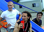 Donots: "In Augsburg gibt es die wohl größte Spielhalle Europas. Guido hat da so ein geiles Angelgerät gefunden, da konnte man so richtig angeln - mit Köder und Schnur. Da kommen dann verschiedene Fische und beißen an - das ist echt der Hammer. Ansonsten haben wir hier noch nicht viel von Augsburg gesehen. Nachdem wir erst um vier Uhr ins Bett gehen, stehen wir nicht vor elf, zwölf auf.