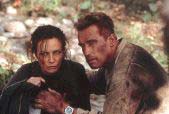 | Selena Perrini (Francesca Neri) ist zusammen mit Gordon (Arnold Schwarzenegger) auf der Flucht. Bild von: Tobis |
