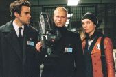 | Als Fernsehteam getarnt dringen Maik (Sebastian Blomberg, links), Tim (Til Schweiger, Mitte) und Nele (Nadja Uhl, rechts) in die streng bewachte Polizeikaserne ein. Bild von: Columbia TriStar |